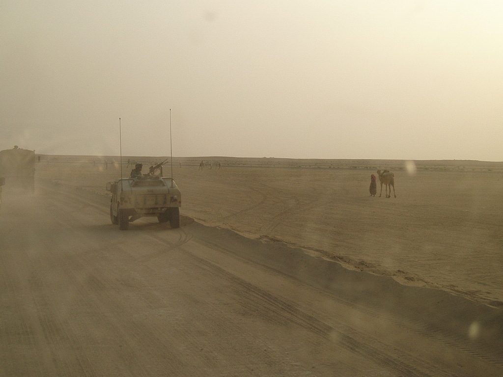 I think I finally got all the sand out of my boots from this latest little trip to the dunes for some convoy operation training. My killers, along with Eric R.'s platoon, went out for a little extra training on stuff we don't normally have anything to do with. Our mission and planning and our entire existence thus far has been all about scouting things out and when we find what we're looking for we take a rather well-aimed shot and move on to bigger and better things. Not this time. We were in a convoy with up-armored Humvees and 5-ton trucks and we went literally bumping down the road rehearsing formations and techniques and contingencies and on and on and on. We didn't do ANYTHING having to do with our normal "craft", but now my guys know how to drive a 5-ton truck so we've got that going for us, which is nice.