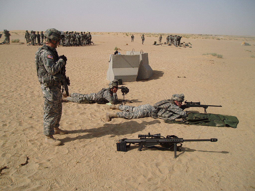 The guys in the pictures at the range are my teams. They're shooting the M24 7.62mm rifle and in the foreground is the M107, otherwise known as the Barrett .50 cal rifle. It's pretty sweet and does the trick when you're trying to shoot through an entire engine block at upwards of 1500 meters. Boom.