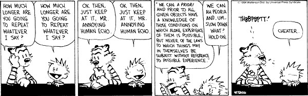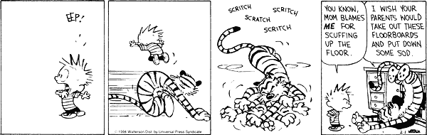 Valentine's Day went extremely well. Erika loved the stuff I got her and she did pretty dang well for me too. I got her a nice little vase of red and white tulips, a card, the movie As Good As It Gets, and a book called The Da Vinci Legacy. She got me three Calvin & Hobbes books and a homemade card. Definitely a good day.