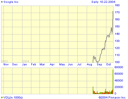 Hehehehe... I'm still laughing at all of you. When the price hits $200, which it most certainly will, I'm cutting back to the 10 shares I originally had and sticking to a much less risky investment "strategy". That may sound like I know what I'm doing, but I'm no expert. I just know a good thing when I see it and Google is a MOST EXCELLENT THING.